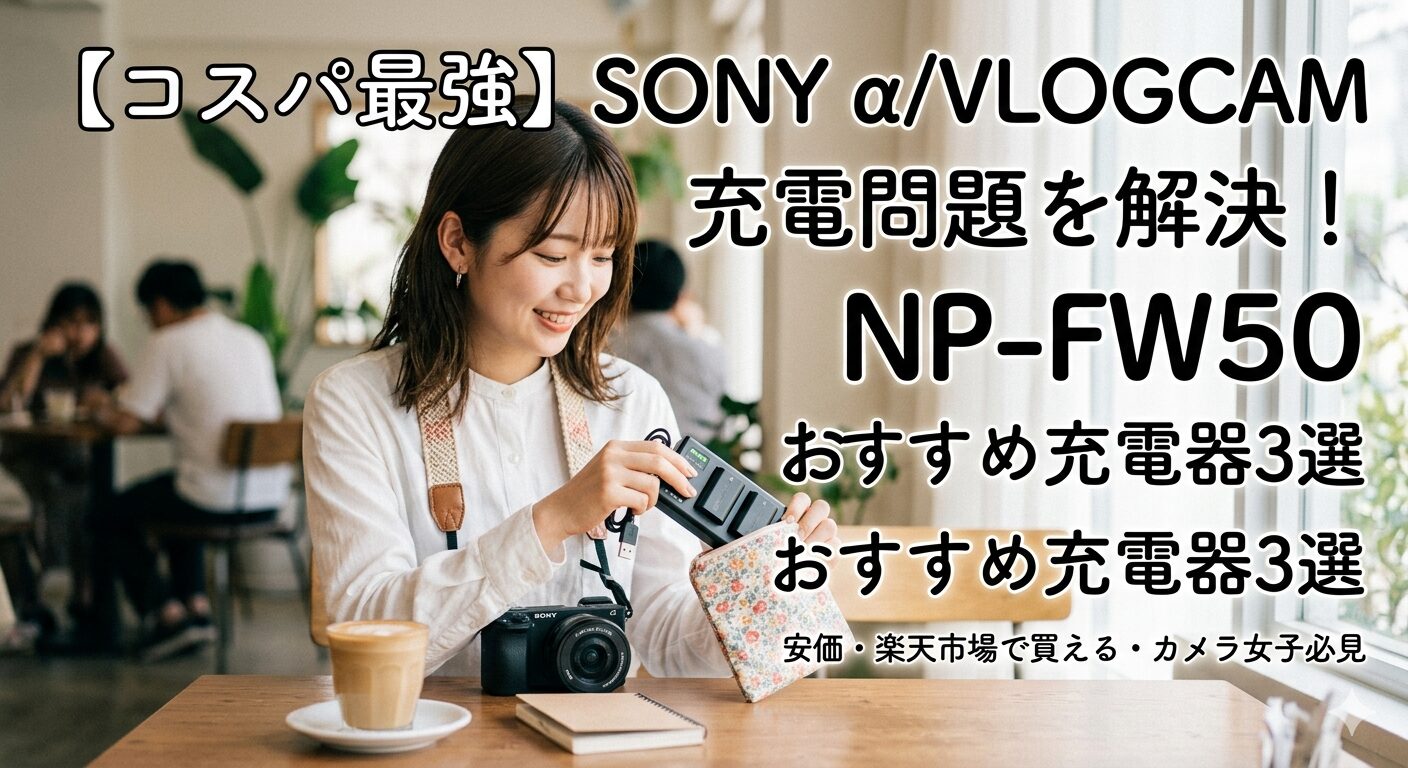 今回は、そんなお悩みを抱えるカメラ女子のみなさんへ、「安くて」「楽天で買えて」「しかも使いやすい」NP-FW50対応の充電器を厳選してご紹介します!