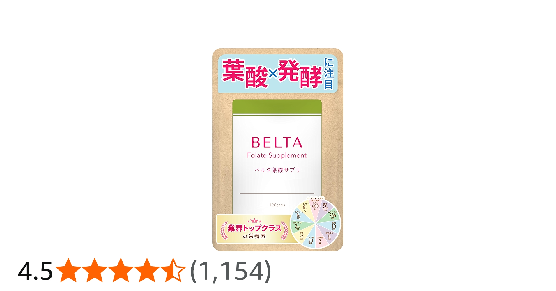 ベルタ葉酸サプリは厚生労働省が推奨するモノグルタミン酸型+酵母葉酸100%の葉酸を480µg配合。一般のモノグルタミン酸型の葉酸とは異なり、葉酸が体内に長く止まり、吸収率が違ってきます。 葉酸以外にも、鉄分や亜鉛、ビタミンDやビタミンB6を...