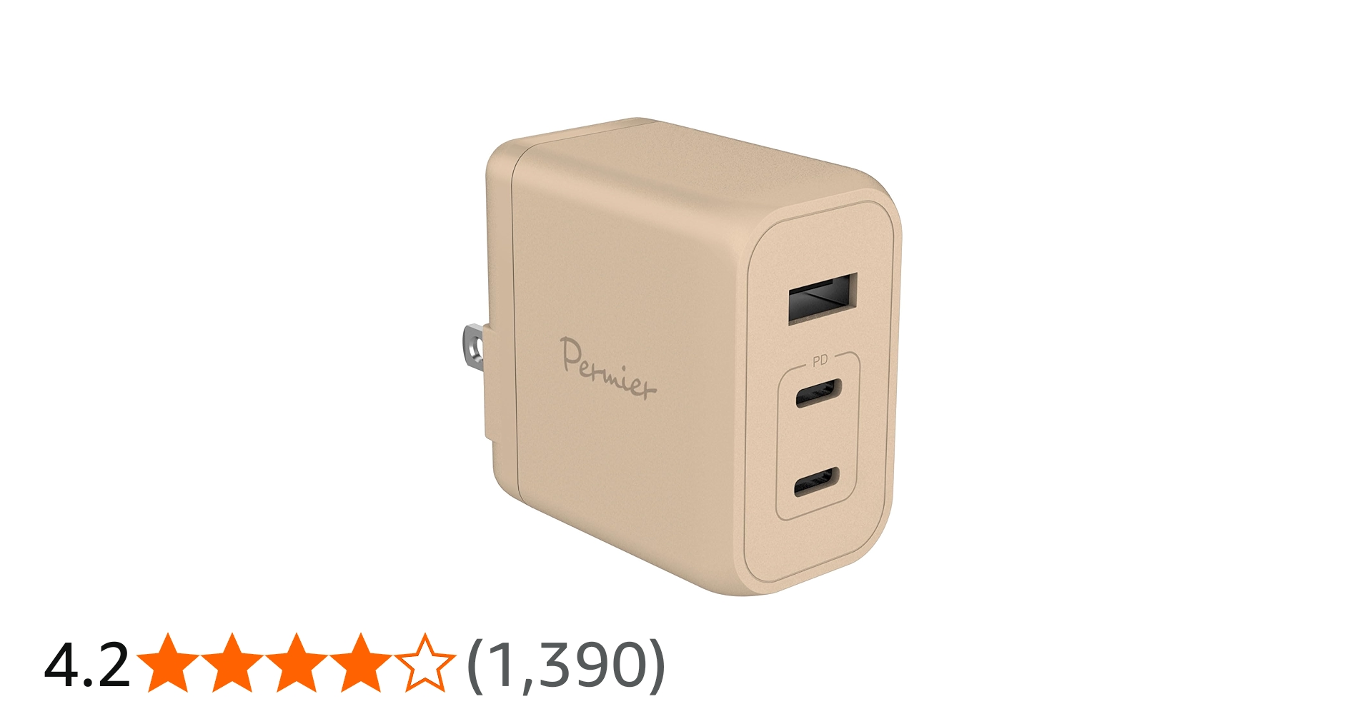 Amazon | 多摩電子工業 PD65W対応 AC充電器 USB x3ポート(USB-C x2、USB-A x1)Permier PR-AP146UC2W GaN採用 急速充電 ACアダプター 新型GaN 窒化ガリウム採用 PSE技術基準適合 折りたたみ式プラグ iPhone15/ 16 / 17 /17 Pro/17 Pro Max/iPhone Air/Android/MacBook(ホワイト) | 多摩電子工業 | AC式充電器